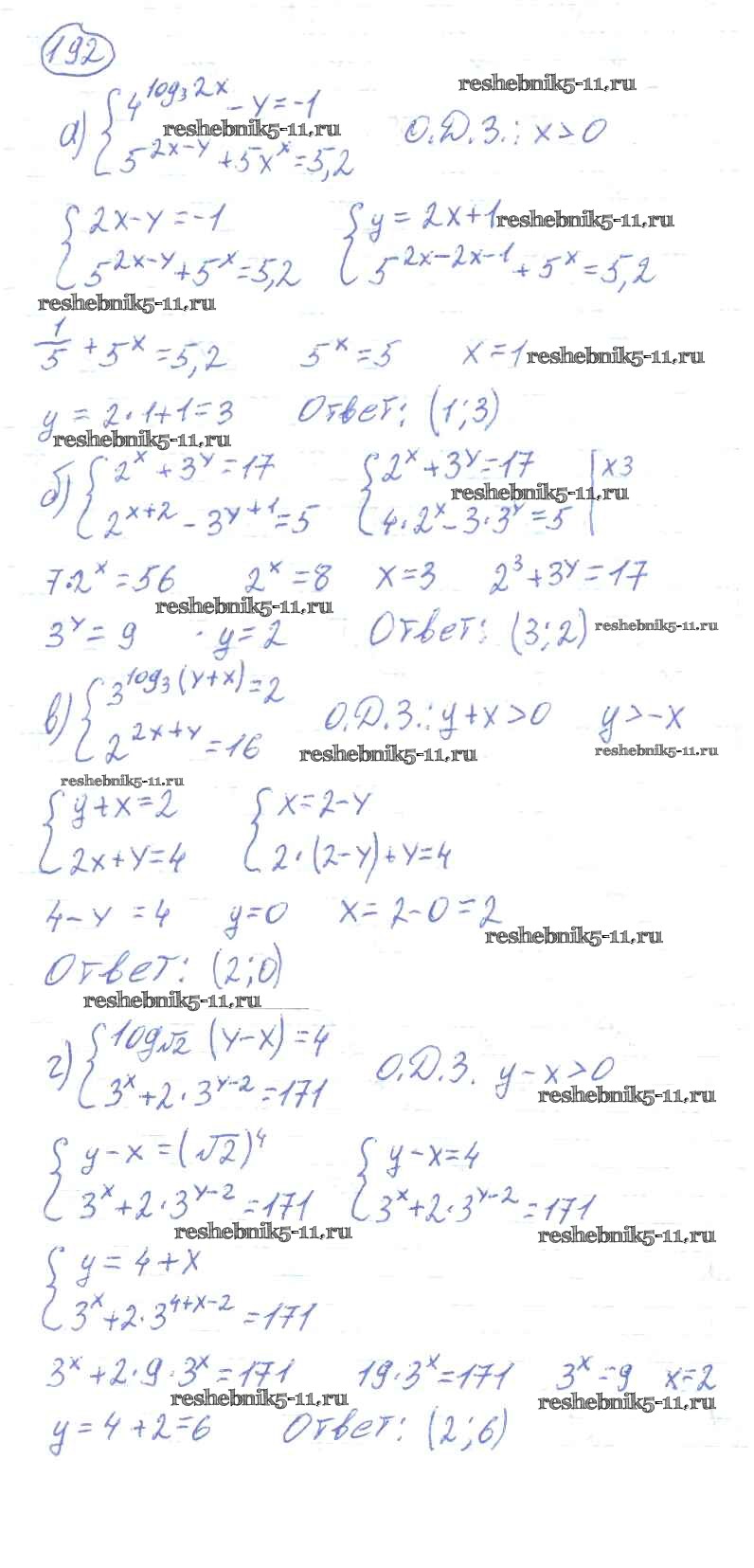 Готовая домашняя работа с ответами по Алгебре за 10, 11 класс Колмогоров, Абрамов, Дудницын, Ивлев, Шварцбурд Учебник Просвещение 2008 ФГОС - Повторение 192