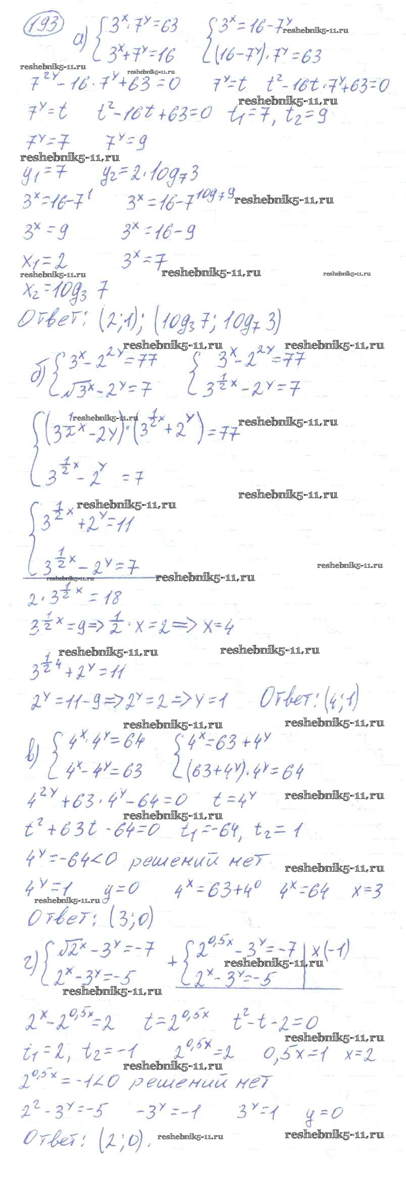 Готовая домашняя работа с ответами по Алгебре за 10, 11 класс Колмогоров, Абрамов, Дудницын, Ивлев, Шварцбурд Учебник Просвещение 2008 ФГОС - Повторение 193
