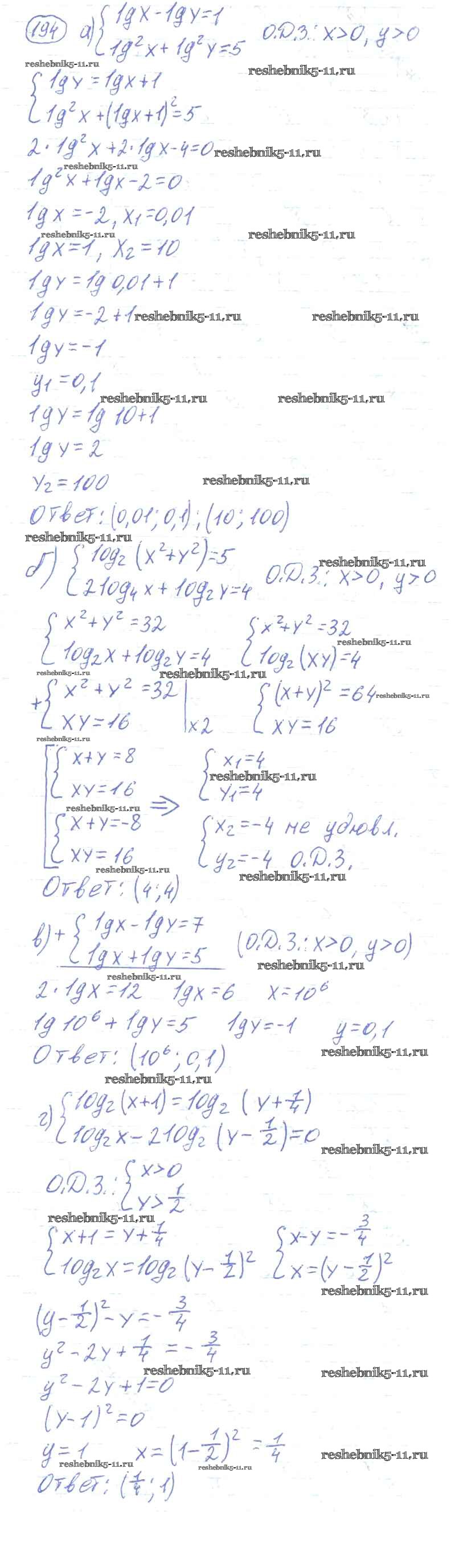 Готовая домашняя работа с ответами по Алгебре за 10, 11 класс Колмогоров, Абрамов, Дудницын, Ивлев, Шварцбурд Учебник Просвещение 2008 ФГОС - Повторение 194