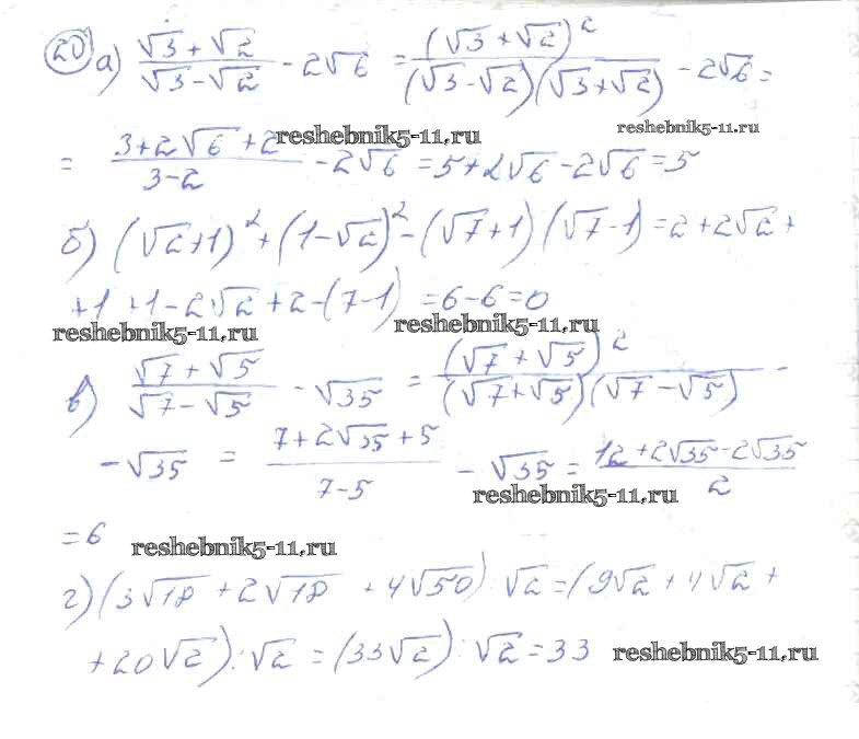 Готовая домашняя работа с ответами по Алгебре за 10, 11 класс Колмогоров, Абрамов, Дудницын, Ивлев, Шварцбурд Учебник Просвещение 2008 ФГОС - Повторение 20