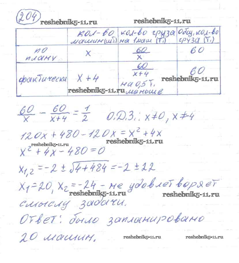 Готовая домашняя работа с ответами по Алгебре за 10, 11 класс Колмогоров, Абрамов, Дудницын, Ивлев, Шварцбурд Учебник Просвещение 2008 ФГОС - Повторение 204