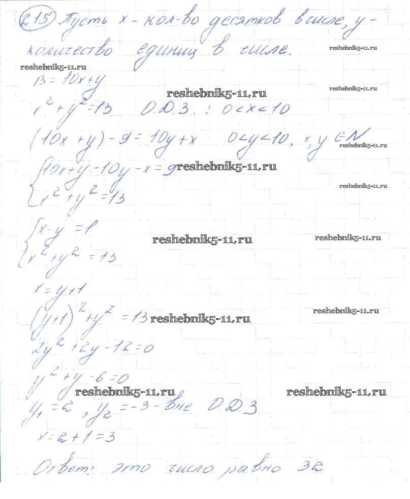 Готовая домашняя работа с ответами по Алгебре за 10, 11 класс Колмогоров, Абрамов, Дудницын, Ивлев, Шварцбурд Учебник Просвещение 2008 ФГОС - Повторение 215