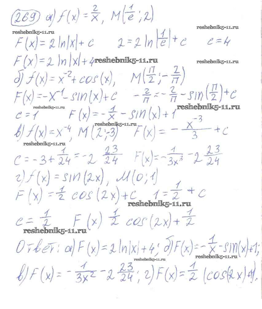 Готовая домашняя работа с ответами по Алгебре за 10, 11 класс Колмогоров, Абрамов, Дудницын, Ивлев, Шварцбурд Учебник Просвещение 2008 ФГОС - Повторение 269