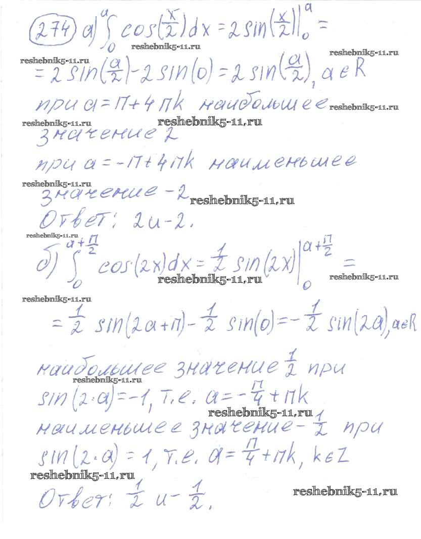 Готовая домашняя работа с ответами по Алгебре за 10, 11 класс Колмогоров, Абрамов, Дудницын, Ивлев, Шварцбурд Учебник Просвещение 2008 ФГОС - Повторение 274
