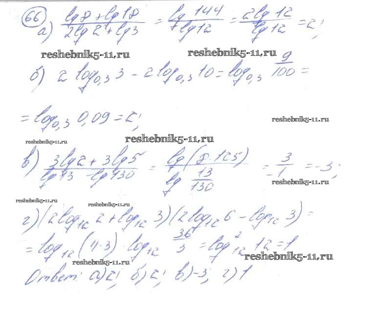 Готовая домашняя работа с ответами по Алгебре за 10, 11 класс Колмогоров, Абрамов, Дудницын, Ивлев, Шварцбурд Учебник Просвещение 2008 ФГОС - Повторение 66