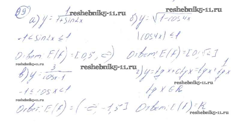 Готовая домашняя работа с ответами по Алгебре за 10, 11 класс Колмогоров, Абрамов, Дудницын, Ивлев, Шварцбурд Учебник Просвещение 2008 ФГОС - Повторение 99