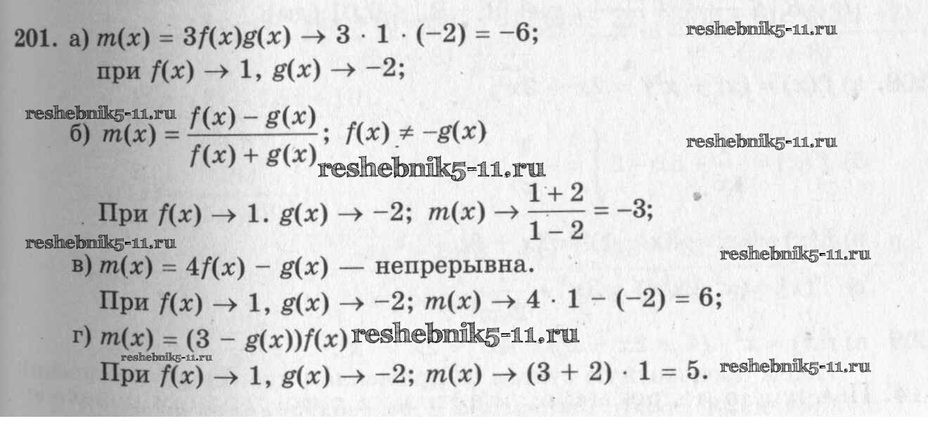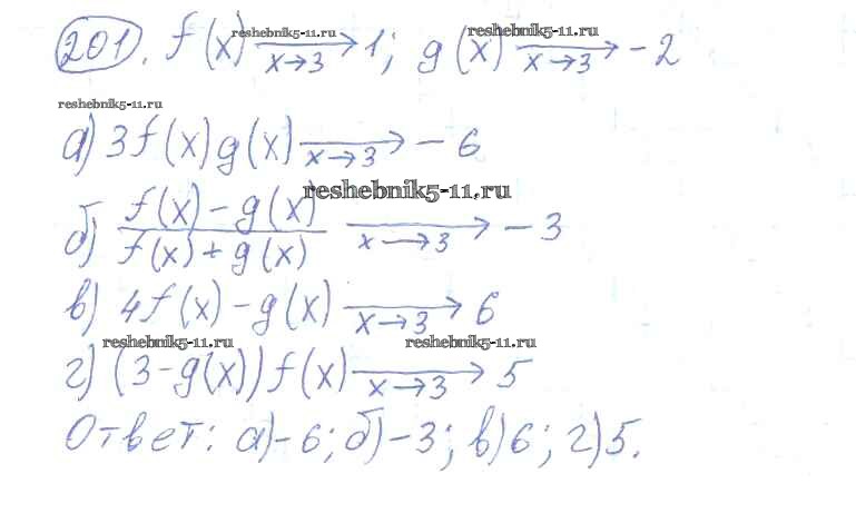 Готовая домашняя работа с ответами по Алгебре за 10, 11 класс Колмогоров, Абрамов, Дудницын, Ивлев, Шварцбурд Учебник Просвещение 2008 ФГОС - Упражнения 201