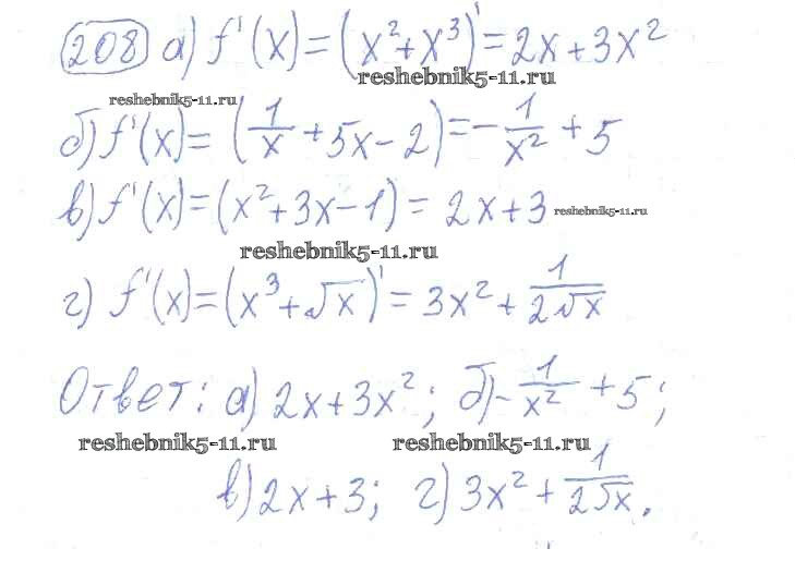 Готовая домашняя работа с ответами по Алгебре за 10, 11 класс Колмогоров, Абрамов, Дудницын, Ивлев, Шварцбурд Учебник Просвещение 2008 ФГОС - Упражнения 208