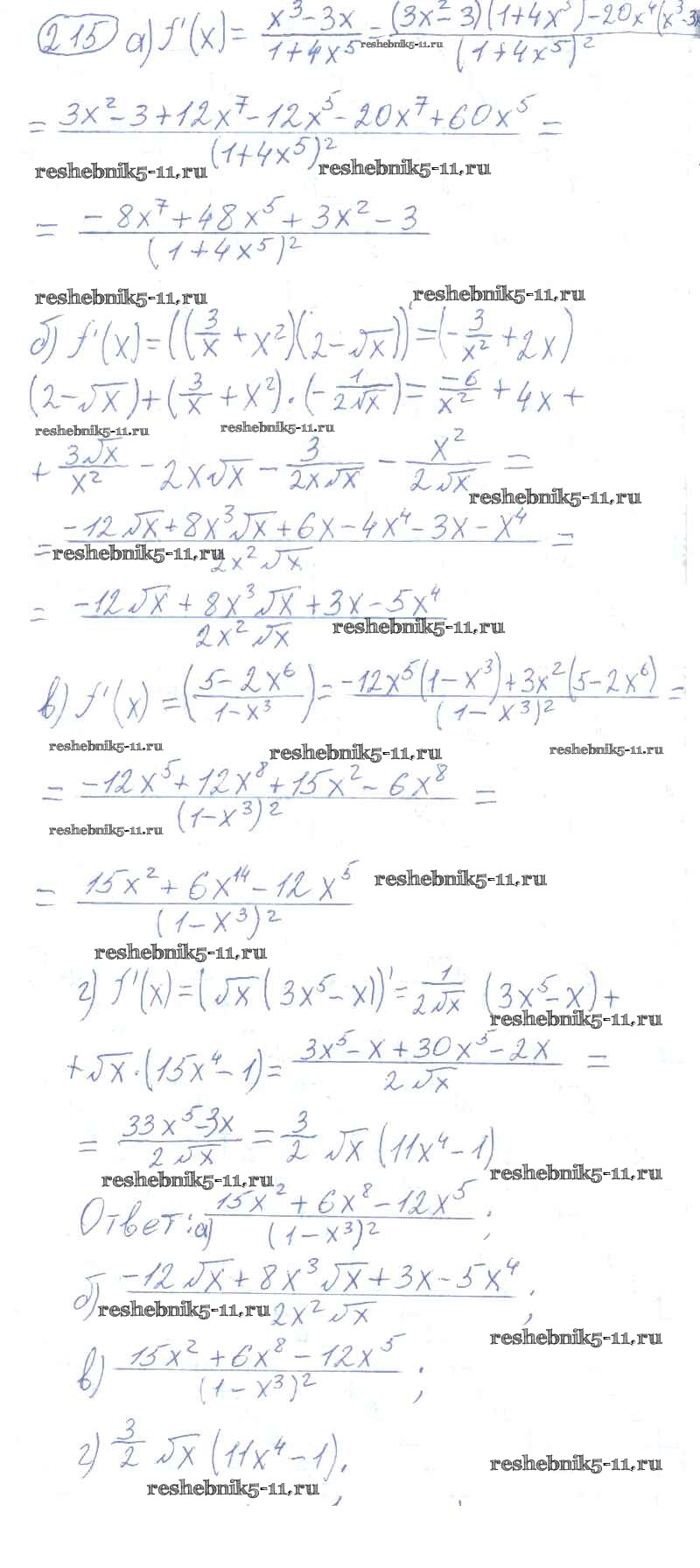 Готовая домашняя работа с ответами по Алгебре за 10, 11 класс Колмогоров, Абрамов, Дудницын, Ивлев, Шварцбурд Учебник Просвещение 2008 ФГОС - Упражнения 215