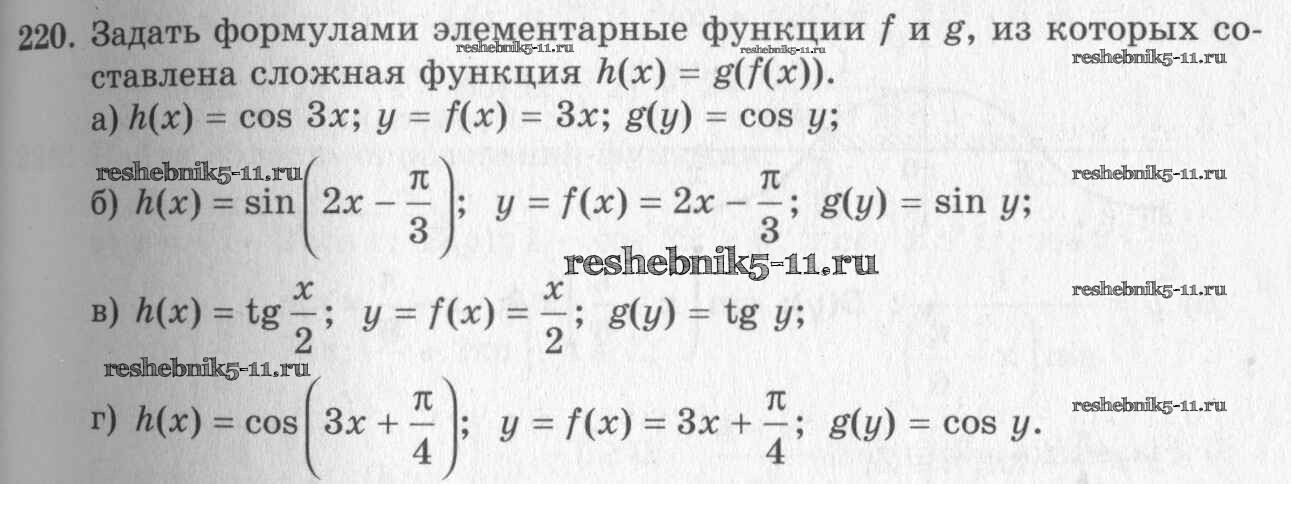 Готовая домашняя работа с ответами по Алгебре за 10, 11 класс Колмогоров, Абрамов, Дудницын, Ивлев, Шварцбурд Учебник Просвещение 2008 ФГОС - Упражнения 220