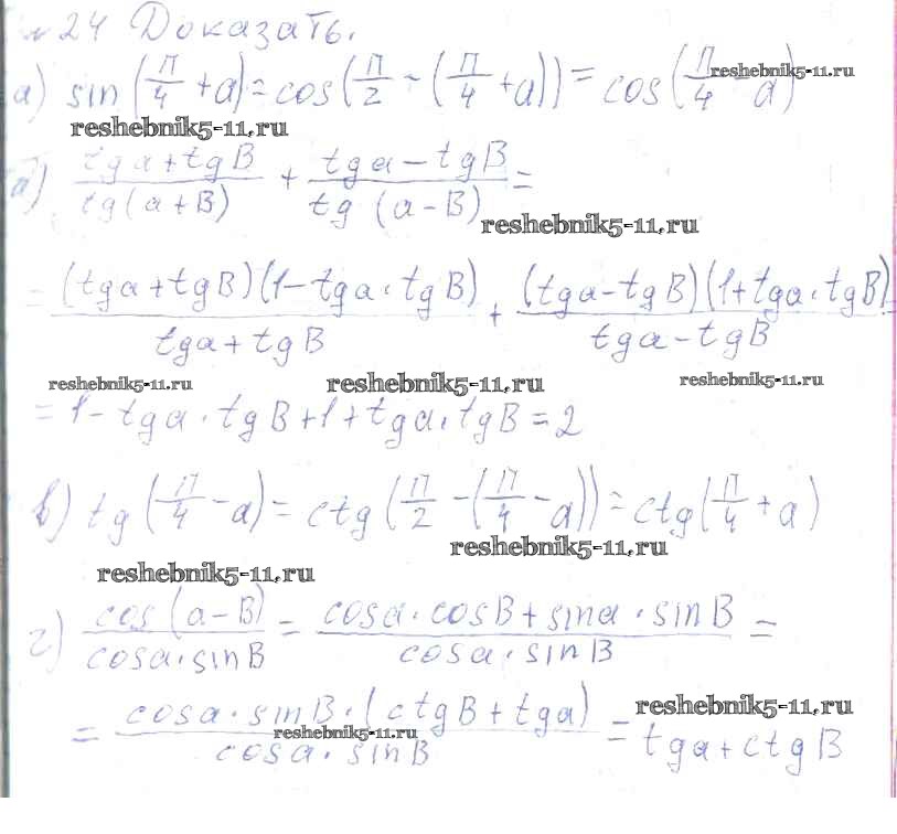Готовая домашняя работа с ответами по Алгебре за 10, 11 класс Колмогоров, Абрамов, Дудницын, Ивлев, Шварцбурд Учебник Просвещение 2008 ФГОС - Упражнения 24