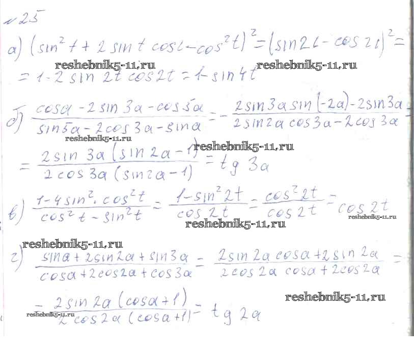 Готовая домашняя работа с ответами по Алгебре за 10, 11 класс Колмогоров, Абрамов, Дудницын, Ивлев, Шварцбурд Учебник Просвещение 2008 ФГОС - Упражнения 25