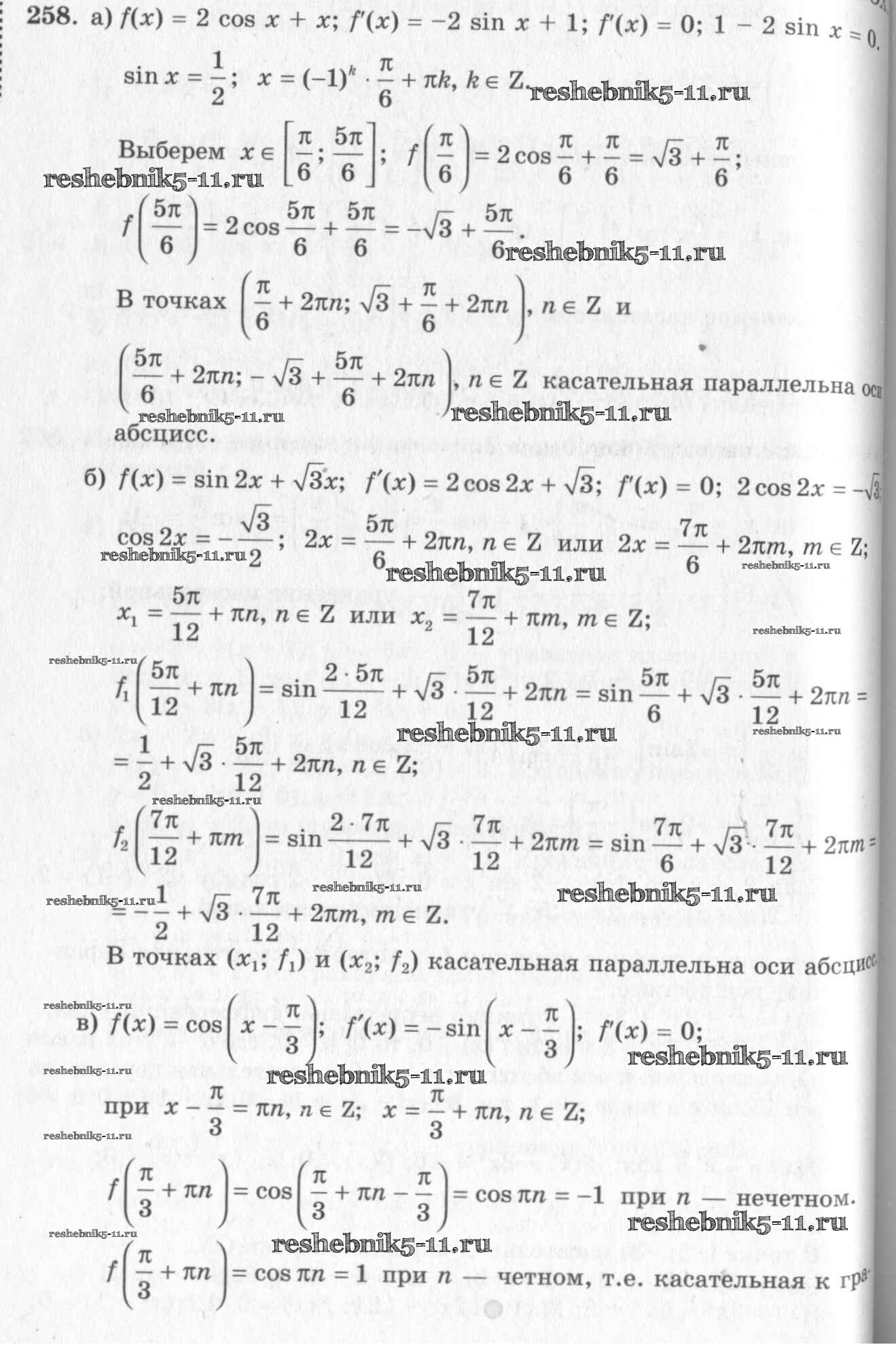 Готовая домашняя работа с ответами по Алгебре за 10, 11 класс Колмогоров, Абрамов, Дудницын, Ивлев, Шварцбурд Учебник Просвещение 2008 ФГОС - Упражнения 258