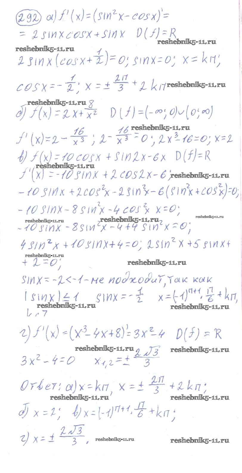 Готовая домашняя работа с ответами по Алгебре за 10, 11 класс Колмогоров, Абрамов, Дудницын, Ивлев, Шварцбурд Учебник Просвещение 2008 ФГОС - Упражнения 292