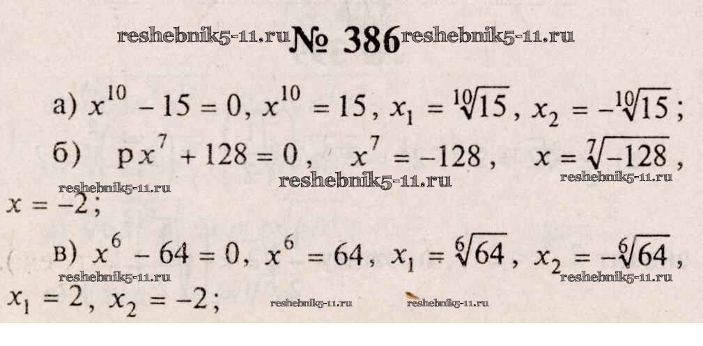 Готовая домашняя работа с ответами по Алгебре за 10, 11 класс Колмогоров, Абрамов, Дудницын, Ивлев, Шварцбурд Учебник Просвещение 2008 ФГОС - Упражнения 386