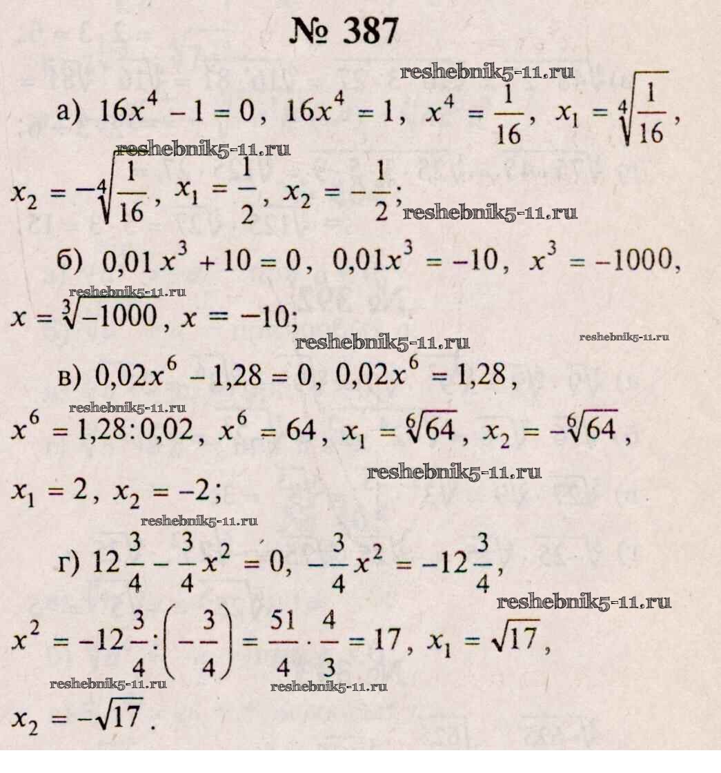 Готовая домашняя работа с ответами по Алгебре за 10, 11 класс Колмогоров, Абрамов, Дудницын, Ивлев, Шварцбурд Учебник Просвещение 2008 ФГОС - Упражнения 387