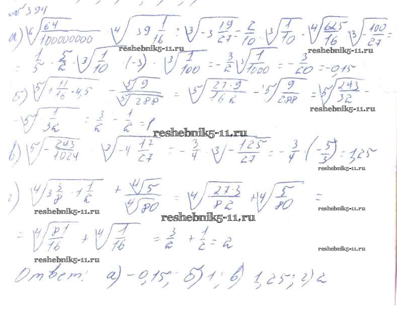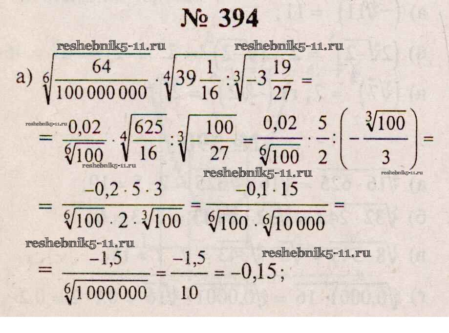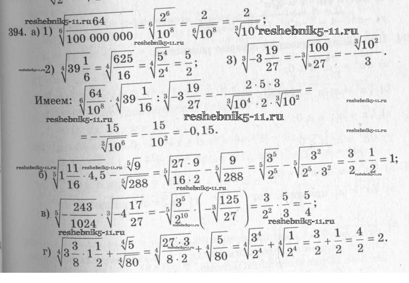 Готовая домашняя работа с ответами по Алгебре за 10, 11 класс Колмогоров, Абрамов, Дудницын, Ивлев, Шварцбурд Учебник Просвещение 2008 ФГОС - Упражнения 394