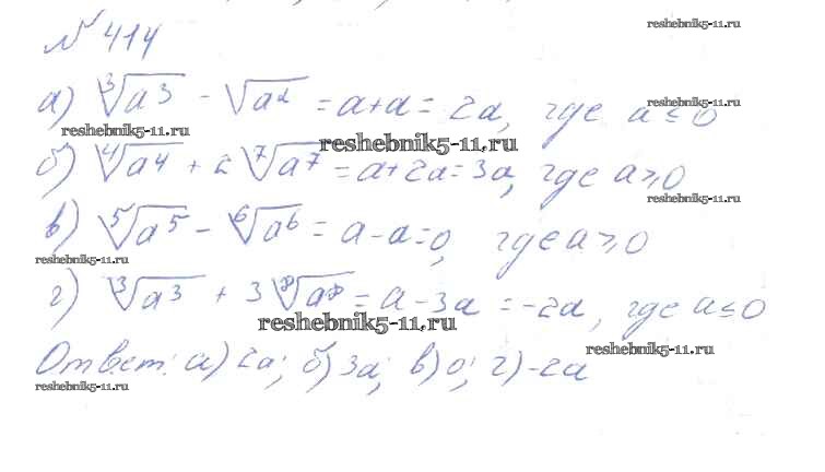 Готовая домашняя работа с ответами по Алгебре за 10, 11 класс Колмогоров, Абрамов, Дудницын, Ивлев, Шварцбурд Учебник Просвещение 2008 ФГОС - Упражнения 414