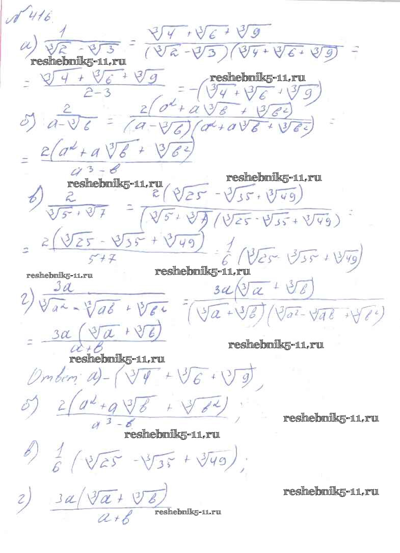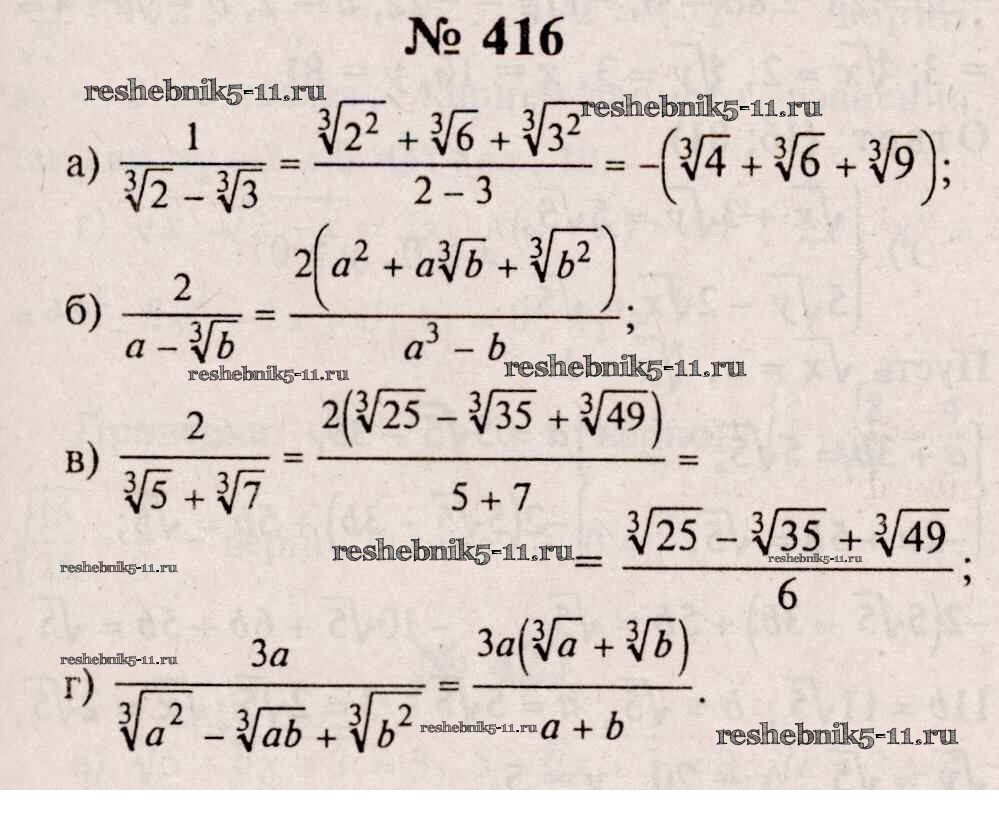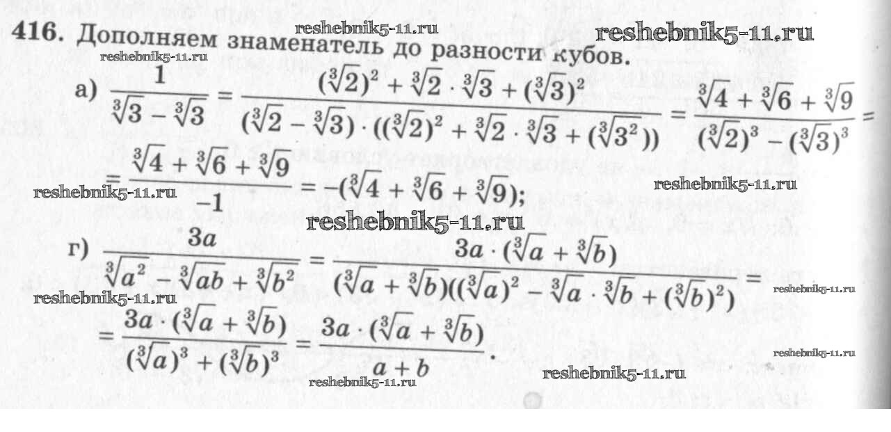 Готовая домашняя работа с ответами по Алгебре за 10, 11 класс Колмогоров, Абрамов, Дудницын, Ивлев, Шварцбурд Учебник Просвещение 2008 ФГОС - Упражнения 416
