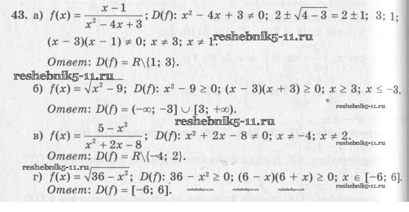 Готовая домашняя работа с ответами по Алгебре за 10, 11 класс Колмогоров, Абрамов, Дудницын, Ивлев, Шварцбурд Учебник Просвещение 2008 ФГОС - Упражнения 43