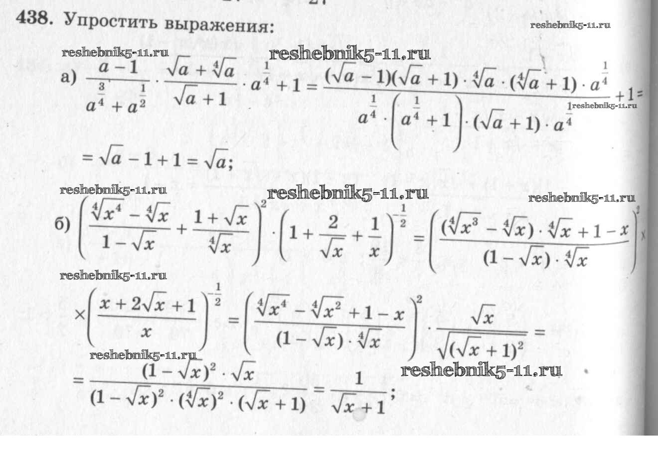 Готовая домашняя работа с ответами по Алгебре за 10, 11 класс Колмогоров, Абрамов, Дудницын, Ивлев, Шварцбурд Учебник Просвещение 2008 ФГОС - Упражнения 438