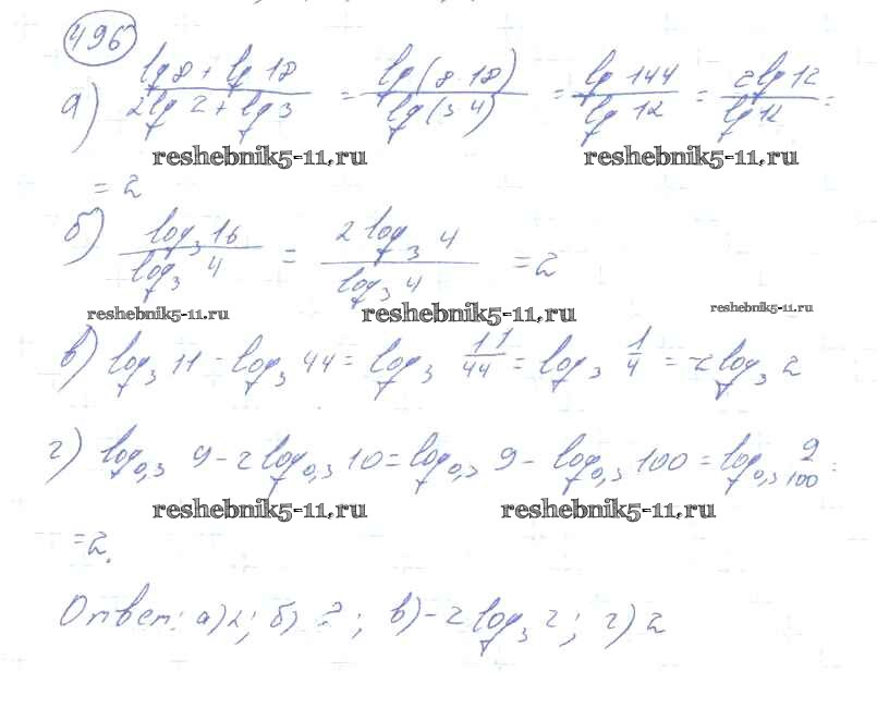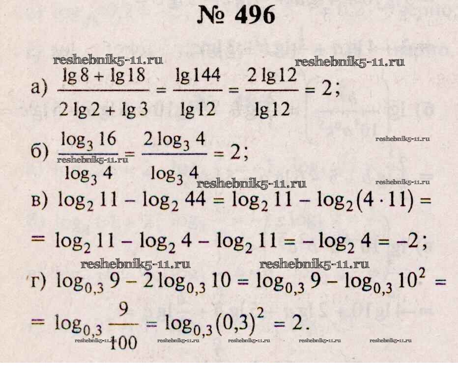 Готовая домашняя работа с ответами по Алгебре за 10, 11 класс Колмогоров, Абрамов, Дудницын, Ивлев, Шварцбурд Учебник Просвещение 2008 ФГОС - Упражнения 496