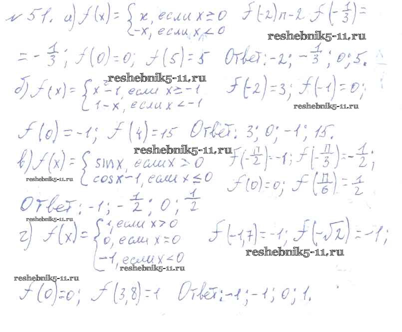 Готовая домашняя работа с ответами по Алгебре за 10, 11 класс Колмогоров, Абрамов, Дудницын, Ивлев, Шварцбурд Учебник Просвещение 2008 ФГОС - Упражнения 51