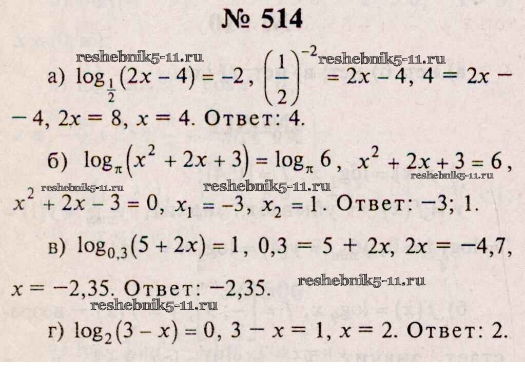 Готовая домашняя работа с ответами по Алгебре за 10, 11 класс Колмогоров, Абрамов, Дудницын, Ивлев, Шварцбурд Учебник Просвещение 2008 ФГОС - Упражнения 514