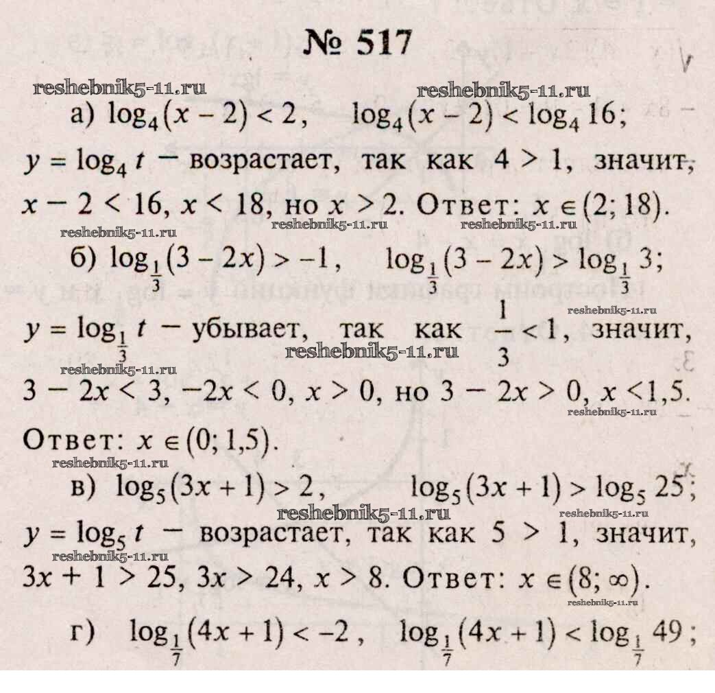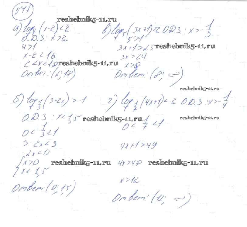 Готовая домашняя работа с ответами по Алгебре за 10, 11 класс Колмогоров, Абрамов, Дудницын, Ивлев, Шварцбурд Учебник Просвещение 2008 ФГОС - Упражнения 517