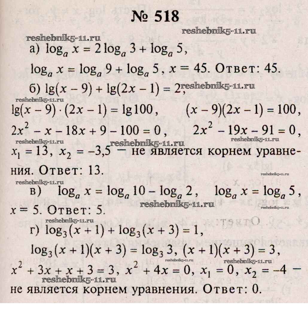 Готовая домашняя работа с ответами по Алгебре за 10, 11 класс Колмогоров, Абрамов, Дудницын, Ивлев, Шварцбурд Учебник Просвещение 2008 ФГОС - Упражнения 518