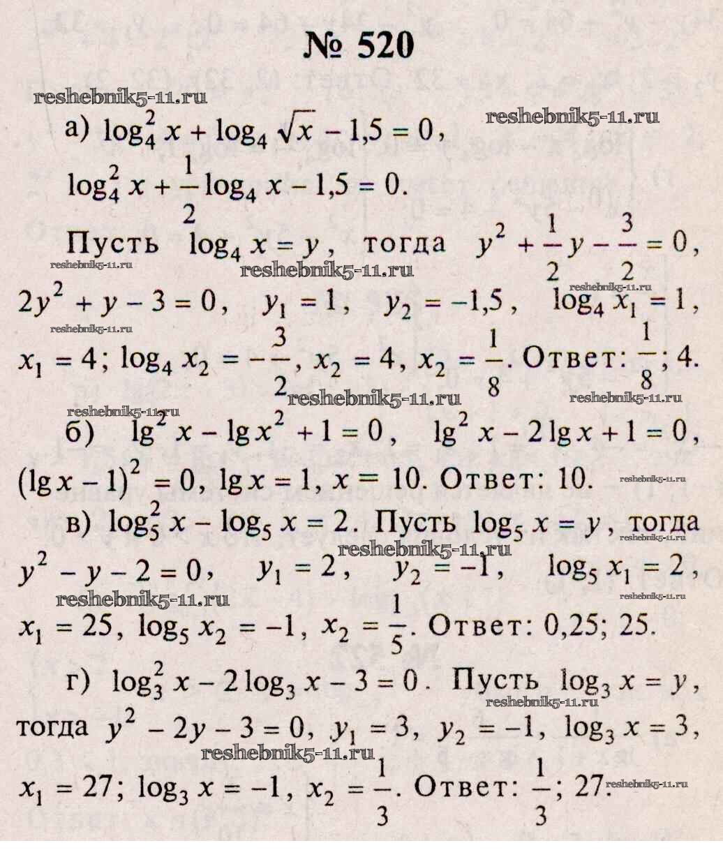 Готовая домашняя работа с ответами по Алгебре за 10, 11 класс Колмогоров, Абрамов, Дудницын, Ивлев, Шварцбурд Учебник Просвещение 2008 ФГОС - Упражнения 520