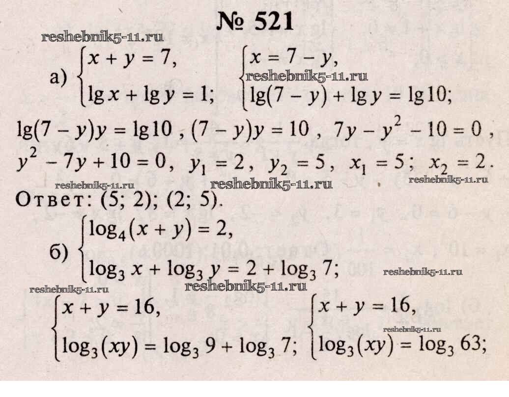 Готовая домашняя работа с ответами по Алгебре за 10, 11 класс Колмогоров, Абрамов, Дудницын, Ивлев, Шварцбурд Учебник Просвещение 2008 ФГОС - Упражнения 521