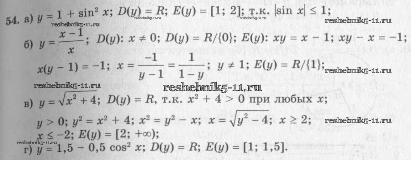 Готовая домашняя работа с ответами по Алгебре за 10, 11 класс Колмогоров, Абрамов, Дудницын, Ивлев, Шварцбурд Учебник Просвещение 2008 ФГОС - Упражнения 54