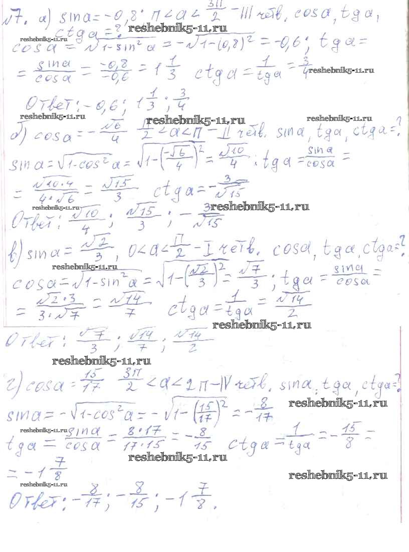 Готовая домашняя работа с ответами по Алгебре за 10, 11 класс Колмогоров, Абрамов, Дудницын, Ивлев, Шварцбурд Учебник Просвещение 2008 ФГОС - Упражнения 7