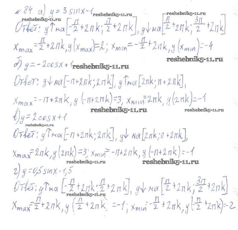 Готовая домашняя работа с ответами по Алгебре за 10, 11 класс Колмогоров, Абрамов, Дудницын, Ивлев, Шварцбурд Учебник Просвещение 2008 ФГОС - Упражнения 84