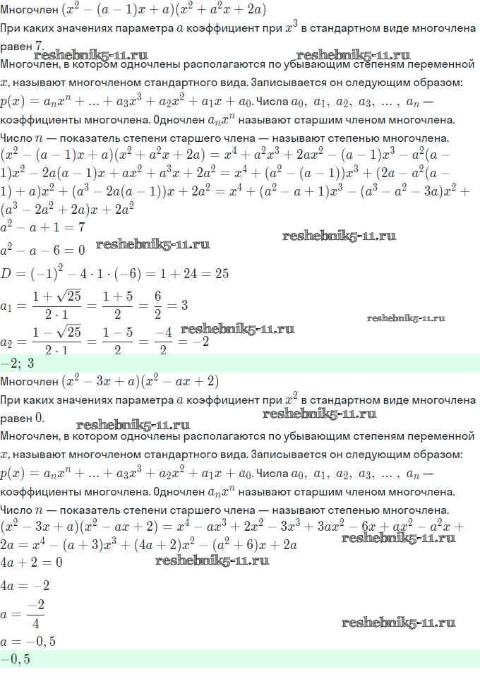 Готовая домашняя работа с ответами по Алгебре за 11 класс Мордкович, Семёнов, Денищева, Корешкова, Мишустина, Звавич Задачник Базовый и углубленный уровень Часть Мнемозина 2017 ФГОС - §1. Многочлены от одной переменной 1.10