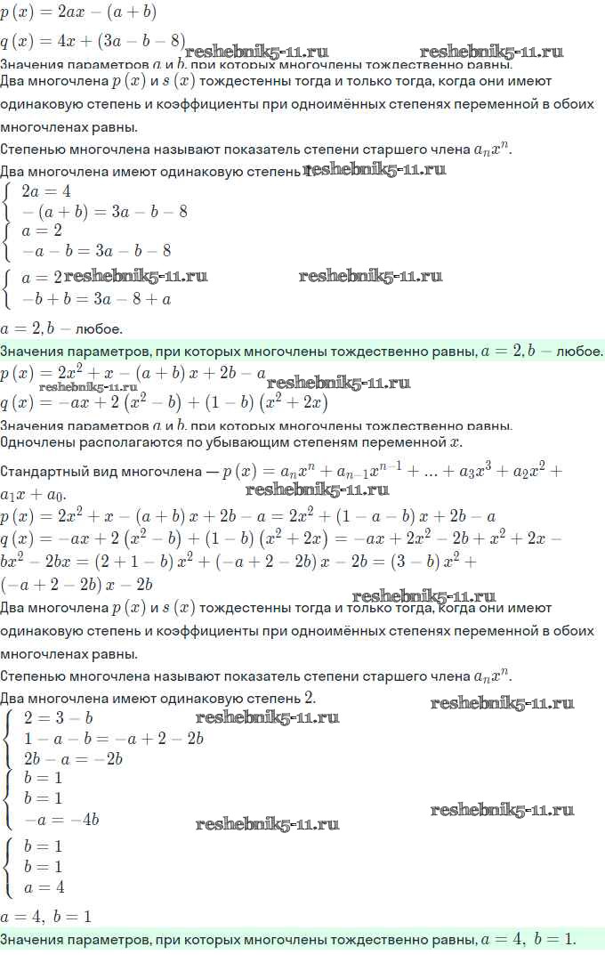 Готовая домашняя работа с ответами по Алгебре за 11 класс Мордкович, Семёнов, Денищева, Корешкова, Мишустина, Звавич Задачник Базовый и углубленный уровень Часть Мнемозина 2017 ФГОС - §1. Многочлены от одной переменной 1.18