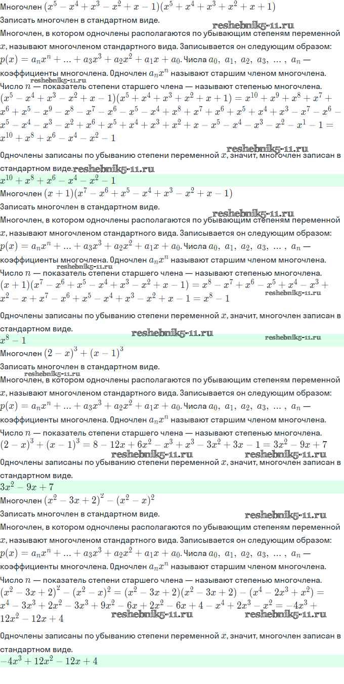 Готовая домашняя работа с ответами по Алгебре за 11 класс Мордкович, Семёнов, Денищева, Корешкова, Мишустина, Звавич Задачник Базовый и углубленный уровень Часть Мнемозина 2017 ФГОС - §1. Многочлены от одной переменной 1.5