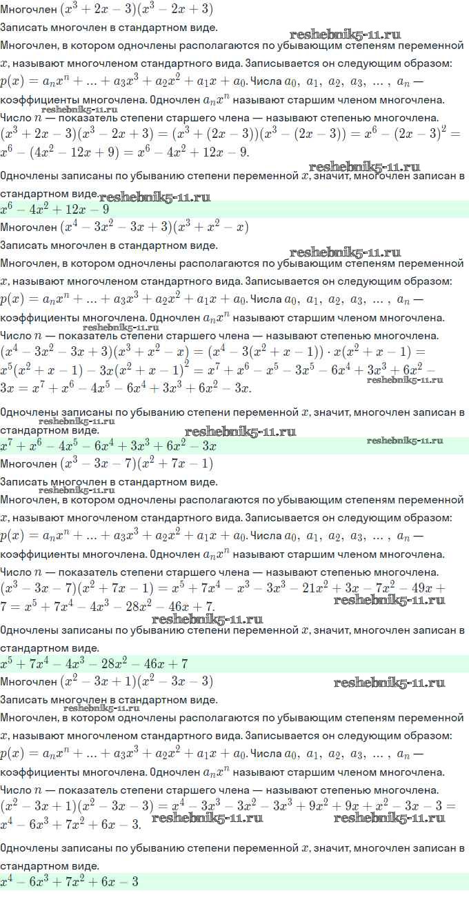 Готовая домашняя работа с ответами по Алгебре за 11 класс Мордкович, Семёнов, Денищева, Корешкова, Мишустина, Звавич Задачник Базовый и углубленный уровень Часть Мнемозина 2017 ФГОС - §1. Многочлены от одной переменной 1.6