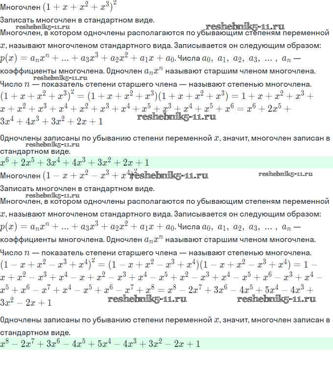 Готовая домашняя работа с ответами по Алгебре за 11 класс Мордкович, Семёнов, Денищева, Корешкова, Мишустина, Звавич Задачник Базовый и углубленный уровень Часть Мнемозина 2017 ФГОС - §1. Многочлены от одной переменной 1.7