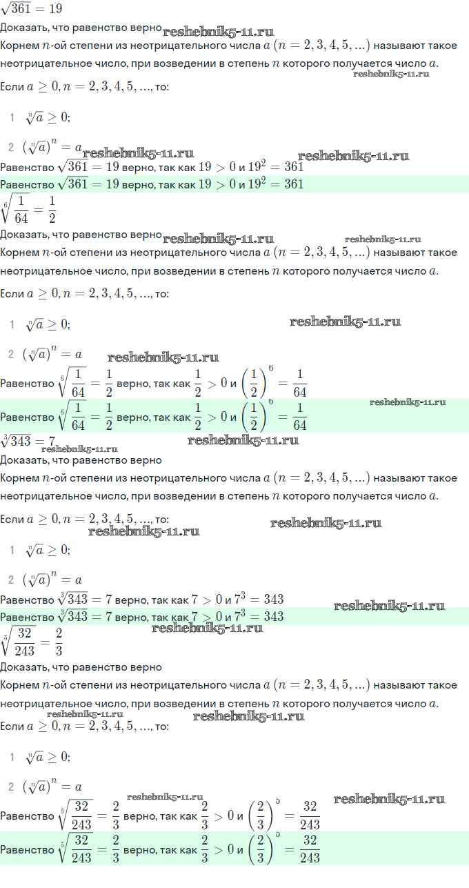 Готовая домашняя работа с ответами по Алгебре за 11 класс Мордкович, Семёнов, Денищева, Корешкова, Мишустина, Звавич Задачник Базовый и углубленный уровень Часть Мнемозина 2017 ФГОС - §4. Понятие корня n-й степени из действительного числа 4.1