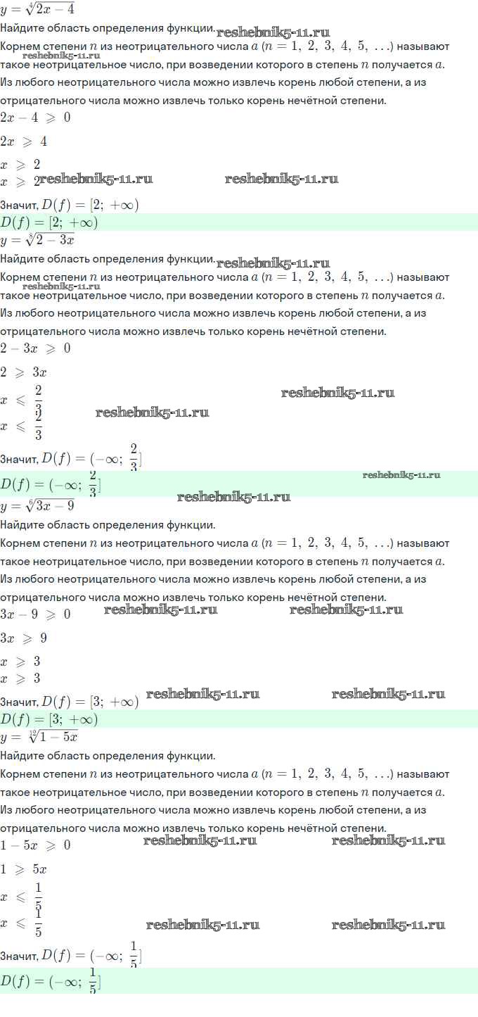 Готовая домашняя работа с ответами по Алгебре за 11 класс Мордкович, Семёнов, Денищева, Корешкова, Мишустина, Звавич Задачник Базовый и углубленный уровень Часть Мнемозина 2017 ФГОС - §5. Функция у=n^√x, её свойства и график 5.10