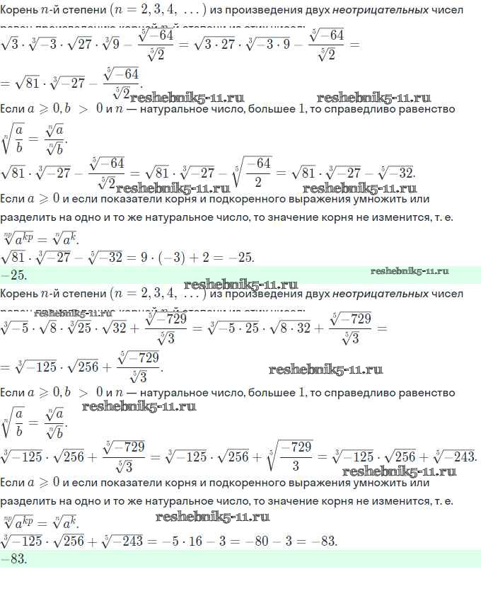 Готовая домашняя работа с ответами по Алгебре за 11 класс Мордкович, Семёнов, Денищева, Корешкова, Мишустина, Звавич Задачник Базовый и углубленный уровень Часть Мнемозина 2017 ФГОС - §6. Свойства корня n-й степени 6.11
