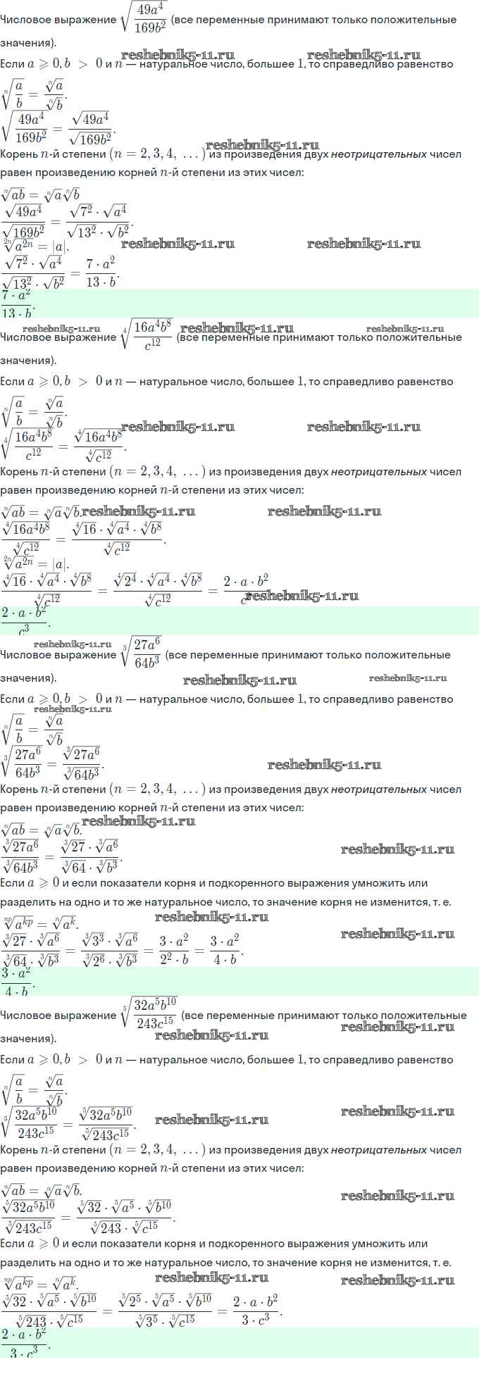 Готовая домашняя работа с ответами по Алгебре за 11 класс Мордкович, Семёнов, Денищева, Корешкова, Мишустина, Звавич Задачник Базовый и углубленный уровень Часть Мнемозина 2017 ФГОС - §6. Свойства корня n-й степени 6.6