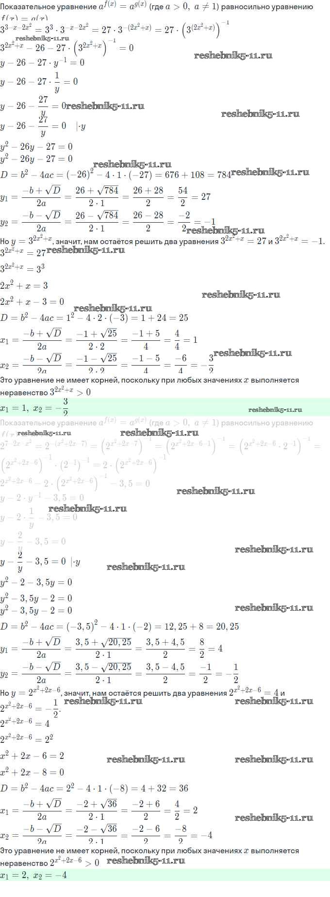 Готовая домашняя работа с ответами по Алгебре за 11 класс Мордкович, Семёнов, Денищева, Корешкова, Мишустина, Звавич Задачник Базовый и углубленный уровень Часть Мнемозина 2017 ФГОС - §12. Показательные уравнения 12.27