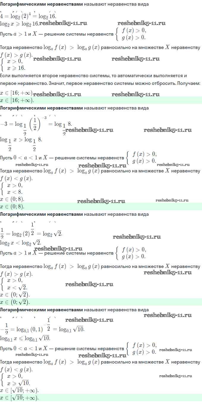 Готовая домашняя работа с ответами по Алгебре за 11 класс Мордкович, Семёнов, Денищева, Корешкова, Мишустина, Звавич Задачник Базовый и углубленный уровень Часть Мнемозина 2017 ФГОС - §18. Логарифмические неравенства 18.1