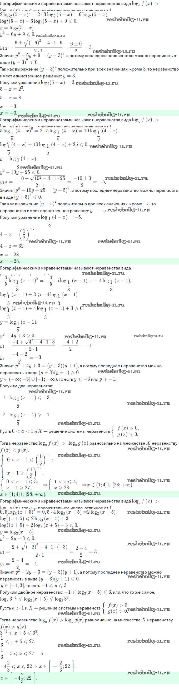 Готовая домашняя работа с ответами по Алгебре за 11 класс Мордкович, Семёнов, Денищева, Корешкова, Мишустина, Звавич Задачник Базовый и углубленный уровень Часть Мнемозина 2017 ФГОС - §18. Логарифмические неравенства 18.20