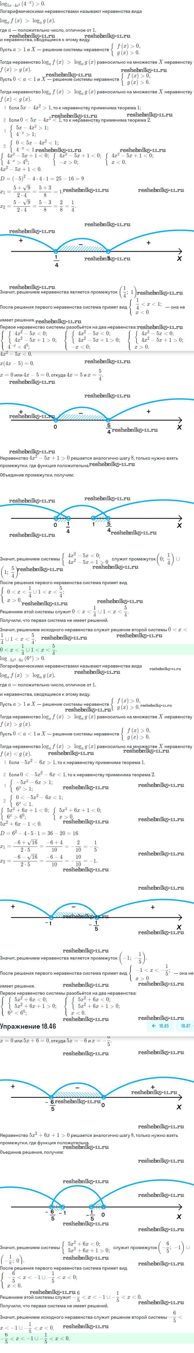 Готовая домашняя работа с ответами по Алгебре за 11 класс Мордкович, Семёнов, Денищева, Корешкова, Мишустина, Звавич Задачник Базовый и углубленный уровень Часть Мнемозина 2017 ФГОС - §18. Логарифмические неравенства 18.46