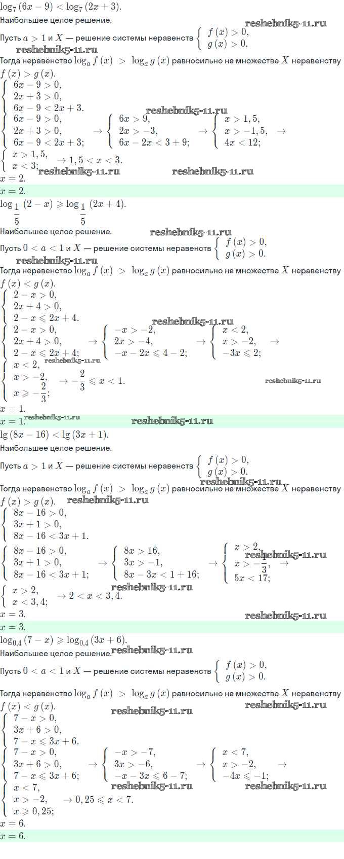 Готовая домашняя работа с ответами по Алгебре за 11 класс Мордкович, Семёнов, Денищева, Корешкова, Мишустина, Звавич Задачник Базовый и углубленный уровень Часть Мнемозина 2017 ФГОС - §18. Логарифмические неравенства 18.7