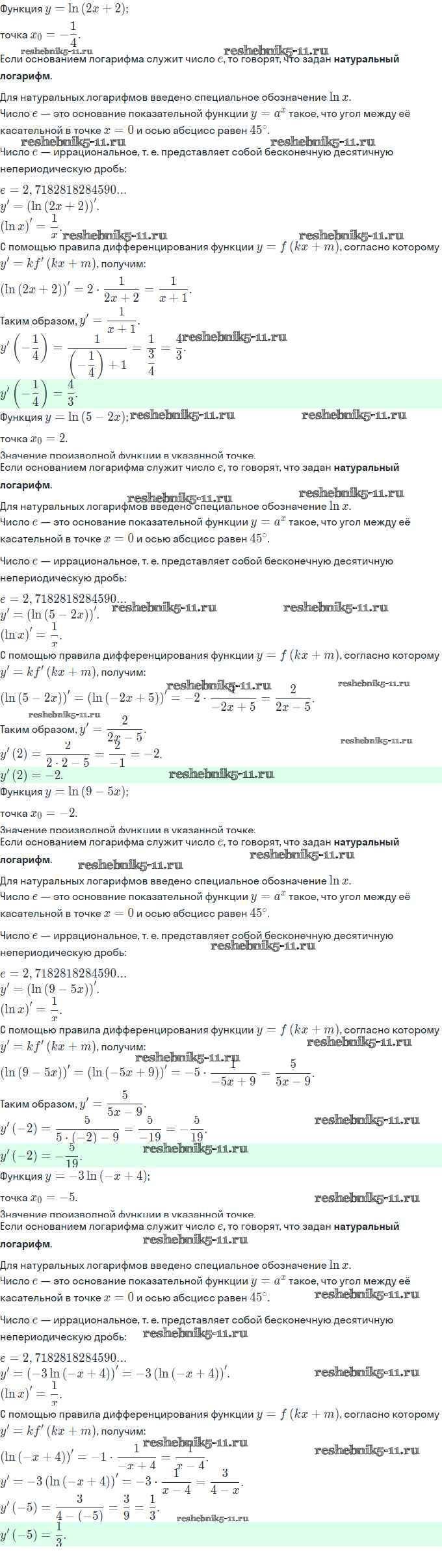 Готовая домашняя работа с ответами по Алгебре за 11 класс Мордкович, Семёнов, Денищева, Корешкова, Мишустина, Звавич Задачник Базовый и углубленный уровень Часть Мнемозина 2017 ФГОС - §19. Дифференцирование показательной и логарифмической функций 19.26